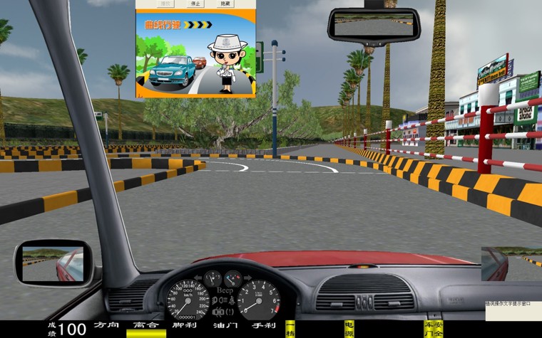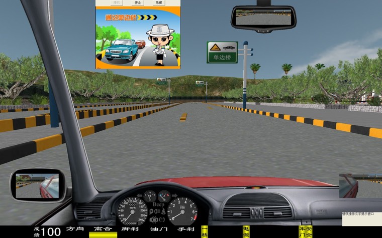 華育寬頻 HYM-9 型汽車駕駛模擬器是一種 80 度視角配 22 寸液晶彩顯的多功能新一代的主被動式汽車駕駛模擬器。它突破了原來在行駛十字路口向左拐的視線盲區(qū),行起車來更加方便逼真, 從而清楚的觀察車輛與路面的位置關(guān)系。是目前市場上絕對最新版的汽車駕駛模擬器軟件。 一、界面顯示 新增加 有: 轉(zhuǎn)向、 油門、 剎車、 離合器深淺進(jìn)度; 檔位、 訓(xùn)練成績, 后視鏡(左、右、中)、 場景地圖顯示; 界面儀表盤上顯示有: 車速表、 發(fā)動機(jī)轉(zhuǎn)速表、 大燈、(遠(yuǎn)光燈、近光燈、視寬燈)、 轉(zhuǎn)向燈、 安全帶提示燈、 車門關(guān)閉提示燈、 機(jī)油燈、 電瓶警告燈等。 在訓(xùn)練過程中、通過雙擊鼠標(biāo)、可實現(xiàn)正視和俯視圖像駕駛之間切換。 三、本模擬系統(tǒng)界面里不同車型之間自由轉(zhuǎn)換,其車型有: 小轎車、 吉普車、 無級變速車(自動檔)、 農(nóng)用車、 大貨車、 大客車、 (車型等多達(dá)六種學(xué)員可以在模擬器上體會不同車型的駕駛體會與樂趣) 四、學(xué)員可以根據(jù)自己駕駛的熟練程度選項訓(xùn)練,分三級訓(xùn)練,即 1 、初級駕駛; 2 、中級駕駛; 3 、高級駕駛訓(xùn)練: 初級駕駛訓(xùn)練 :初級駕駛可分為六種車型和三種練習(xí)方法,即 1 、被動駕駛; 2 、原地訓(xùn)練; 3 、簡易道路等訓(xùn)練 中級駕駛訓(xùn)練 :可選擇場景內(nèi)的相應(yīng)功能訓(xùn)練:車輛的數(shù)量、車型、道路、天氣等。 高級駕駛訓(xùn)練 :可選車輛的數(shù)量、車型、道路、天氣及 交通部規(guī)定的九項專項訓(xùn)練 即: 1 通過連續(xù)障礙、 2 通過單邊橋、 3 直角轉(zhuǎn)彎、 4 側(cè)方位停車、 5 上坡定點停車與坡道起步、 6 限速通過限寬門、 7 百米 加減檔、 8 起伏路駕駛、 9 曲線行駛等 。場景內(nèi)最多可達(dá) 60 輛其他車輛,達(dá)到模擬逼真的交通流狀況。 訓(xùn)練氣候 面有:“