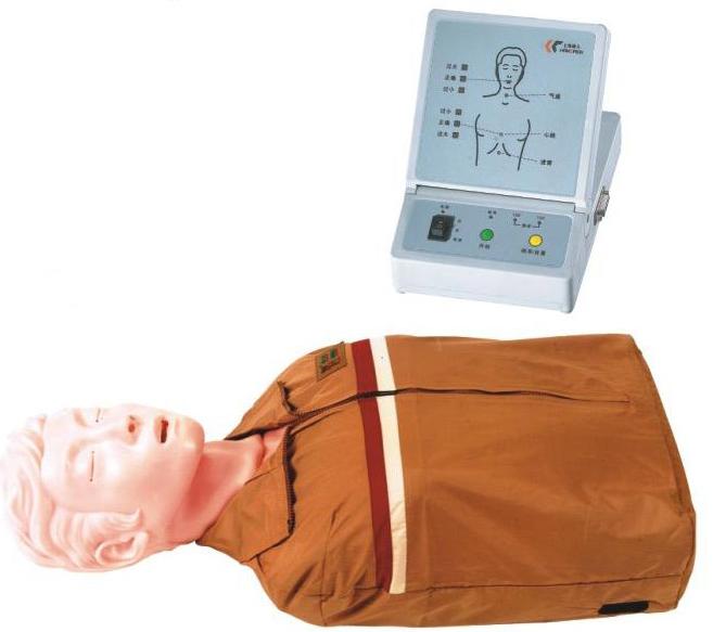 心肺復(fù)蘇,國(guó)際代稱CPR。在生活中,健康人由于心臟驟停(如觸電、溺水、高空作業(yè)事故、交通事故、旅游意外、心臟疾病、心肌梗塞、自然災(zāi)害、意外事故等所造成的心臟驟停),而必須采取胸外按壓、人工口鼻呼吸、心內(nèi)注射、氣道放開(kāi)等搶救過(guò)程。使病人追短時(shí)間內(nèi)得救。在搶救過(guò)程中胸外按壓位置,按壓強(qiáng)度是否正確,人工呼吸吹入的吹氣量是否足夠等規(guī)范動(dòng)作是否正確,是搶救病人是否成功的關(guān)健。因此,在系列搶救過(guò)程中,必須要掌握心肺復(fù)蘇技術(shù)。模擬胸外按壓、人工呼吸、心內(nèi)注射、頸動(dòng)脈模擬搏動(dòng)、瞳孔由一只散大與一只縮小的比較認(rèn)識(shí),達(dá)到掌握操作訓(xùn)練心肺復(fù)蘇術(shù)的基本要求。對(duì)操作正確與否,有光電信號(hào)顯示、數(shù)碼顯示等功能,它是訓(xùn)練搶救人員進(jìn)行心肺急救技術(shù)訓(xùn)練的要求的模擬機(jī)。
